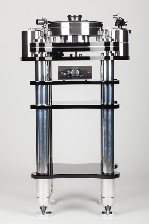 Стойка для Transrotor ZET 1 Glossy White. Глянцевый белый акрил и полированный алюминий. Размер: 45 x 40 x 84 см, вес 44 кг