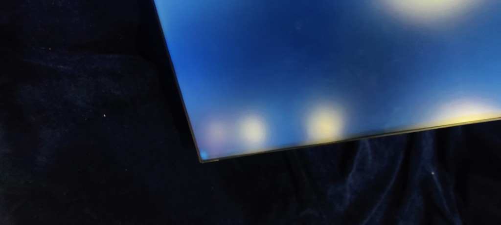 Упаковка вскрывалась, рваная, грязная, вся в скотче. Оборудование использовалось. Со всех сторон на углах видны потертости и сколы. По краям на экране видны небольшие засветы. Шумит кулер. Нет пульта.