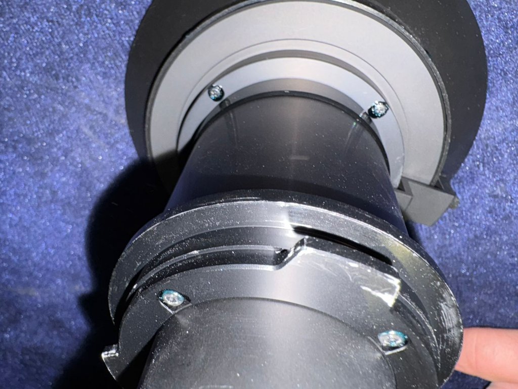 Использовался для демонстрации несколько раз, небольшие потертости на байонете ( месте крепления объектива к проектору), помятая упаковка.