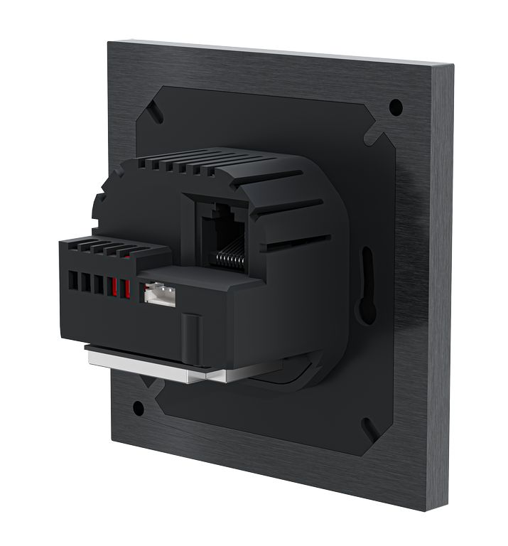 Комнатный контроллер в виде настенной панели с сенсорным экраном 4" с разрешением 480 х 480 точек. Предназначен для управления оборудованием по протоколам на базе IP. Порт RJ45 Ethernet, слот для расширения KNX/VRV, дискретный выход 5В 0.1А, дискретный вход, датчик температуры, датчик влажности. Центральный процессор ARM А7 1.2ГГц, 128 МБ DDR3 ОЗУ, 256 МБ NAND ПЗУ. Монтаж в стандартную установочную коробку ф68 мм.