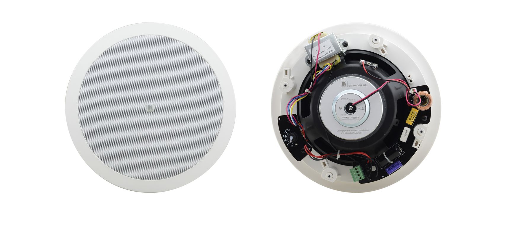 Пара двухполосных громкоговорителей, предназначенных для установки на потолке, с трансформатором; 8", 8 Ом, 70/100 В, 50 Вт, открытого типа