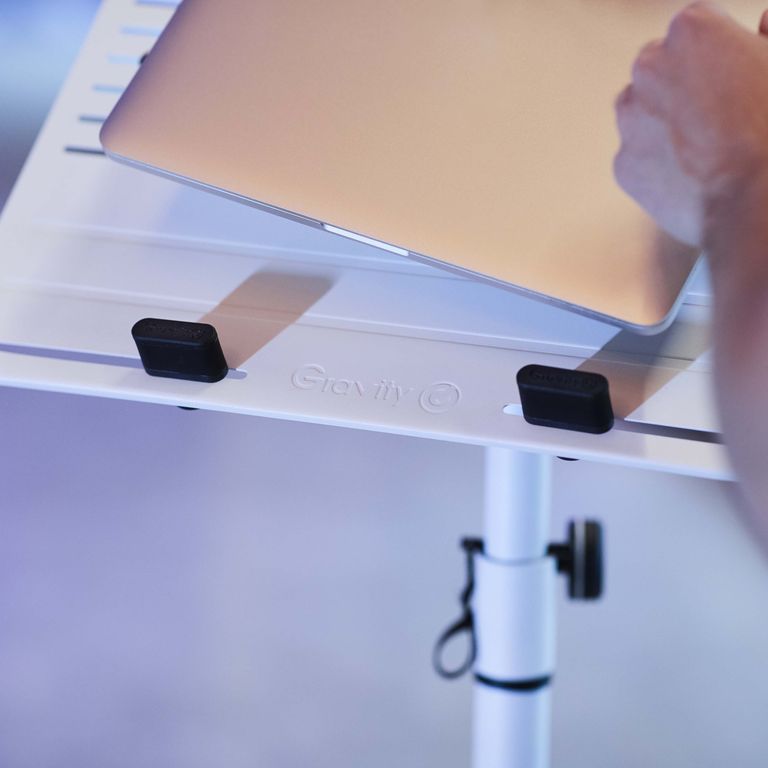 Универсальная подставка Gravity LTS T 02 W решает проблему с необходимостью найти место под ноутбук или планшет для исполнителей и музыкантов, а также подходит как решение с расположением рабочего места дома или в офисе. Подставка подходит для всех ноутбуков и планшетов с диагональю 12 до 17 дюймов. Четыре фиксатора обеспечивают надежное положение ноутбука, при необходимости их можно снять. Вентиляционные отверстия обеспечивают своевременное охлаждение техники. Подставка регулируется по наклону, что позволяет использовать ее как в горизонтальном, так и в вертикальном положении. Gravity LTS T 02 W оснащена стальным надежным основанием, а высота регулируется от 79 до 129 см, что позволяет ее использовать как сидя, так и стоя людям с разным ростом.