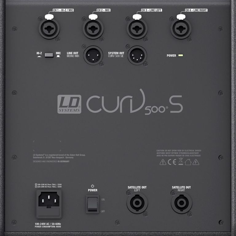 В 10-дюймовом сабвуфере находится усилитель мощности класса D, лимитер, защиту от короткого замыкания, перегрева, перегрузок, а также 4-канальный микшер с 16 пресетами цифровых эффектов и Bluetooth®. Сабвуфер оснащен четырьмя цифровыми пресетами, резьбовым фланцем M20 и тремя эргономичными ручками для переноски. Второй сабвуфер с собственным усилителем мощности имеет идентичные технические характеристики, но в нем отсутствует микшер.